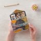 Eine einmalige böhmisch-schicke, ganz in einem Stil gehaltene Hochzeitseinladung in lebhaften Orange und Schwarz mit abstraktem Aquarell und eleganten Goldakzenten. Personalisieren Sie dieses auffällige Design mit vier individuellen Fotos des Ehepaares, und fügen Sie Ihre Website und QR-Code für einfache UAWG und zusätzliche Details ein. Sie brauchen keinen Umschlag, fügen Sie einfach Ihre Rücksendeadresse auf die obere Klappe, Siegel es, und senden Sie mit Liebe!