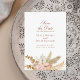 Mit der Modern Boho Pampas Grass Save the Date Card, einer charmanten Mischung aus zeitgenössischem Flair und böhmischem Charme, verkünden Sie Ihre anstehende Feier stilvoll. Diese Save the Date-Karte zeichnet sich durch eine faszinierende Mischung aus modernen Designelementen und natürlichen Texturen aus, mit einem anmutigen Pampas-Gras-Set vor einem Hintergrund erdiger Töne. Die boho-inspirierte Ästhetik zeigt sich in der eleganten Anordnung der botanischen Schriften, die ein Gefühl von Laune und Romantik ausstrahlen. Die puristische Linienführung und die minimalistische Gestaltung sorgen für eine moderne Touch, während die sanfte Farbpalette eine warme und einladende Atmosphäre schafft. Mit seiner einzigartigen Mischung aus Eleganz und böhmischem Reiz wird diese Save the Date Karte sicher das Herz Ihrer Gäste einfangen und den Ton für eine unvergessliche Feier Set.