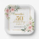 Modern Boho rot Rosa Blütengold 50. Geburtstag Pappteller