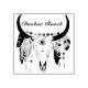 Fügen Sie persönlichen oder geschäftlichen Namen für eine coole Briefmarke im Boho-Stil, die einen Kuhschädel mit Federn und Perlen dekoriert.