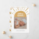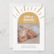 Suchen Sie eine moderne boho Geburtsankündigungskarte? Schauen Sie nicht weiter. Diese sonnige Geburtsankündigung enthält eine senfgelbe Sonnenanleitung. Fügen Sie oben den Namen Ihres Babys hinzu, laden Sie Ihr eigenes Foto hoch und fügen Sie Ihren eigenen Text hinzu.