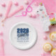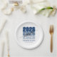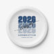 Modern Class of 2026 Navy Blue Graduation Party paper plates with stacked “2026” bold typography.