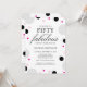 This modern and sleek invitation combines elegant script font and minimal typography on a custom photo of the birthday girl to celebrate 50 and fabulous in the best way ever. A combination of grey, pink and black polka dots can be rearranged on the page to accomodate any text. Contact the designer for more design customization options.