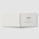 An elegant wedding guest book crafted with both modern and classic elements, designed for couples who love quiet luxury and timeless typography. The cover blends modern minimalism with classic romance, featuring chic monogrammed initials and a delicate botanical detail. Your names are displayed in refined serif typography inspired by ancient Roman engravings, all set against a creamy faux linen background that adds subtle texture and depth. The interior features lined pages to keep handwriting neat and easy to read. Invite guests to sign their names and leave a short message, creating a keepsake as unique as your celebration that is perfect for collecting heartfelt wishes, signatures, and memories you will cherish for a lifetime.