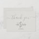 An elegant wedding thank you flat notecard crafted with both modern and classic typographic elements, designed for couples who love quiet luxury and timeless typography. This style blends modern minimalism with classic romance, featuring chic monogrammed initials and a delicate botanical detail. Your names are displayed in refined serif typography inspired by ancient Roman engravings, all set against a creamy faux linen background that adds subtle texture and depth.