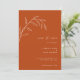 Handgezeichnetes botanisches Hochzeitstil für eine moderne Save the Date-Karte. Minimal elegantes Design mit handgezeichneten Blätter und moderner Typografie. Dieses Design passt sich Ihrem Hochzeitsstil an. Der klassisch minimalistische Stil macht es perfekt für jede elegante Hochzeit. Hintergrund und Schriftart sind Terrakotta Rost oder verbrannte sienna orange und weiß, kann aber in jede andere Farbe geändert werden.