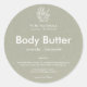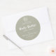 Modernes Botanisches Leaf Logo Grün Neutrales Produkt Klassischer Rundaufkleber. Ein schlichtes minimalistisches Design mit einer Blattlinie und klaren Schriftart auf einem grünen, handgefertigten Papierhintergrund. Dieses Design eignet sich hervorragend für handgemachte Badewanne und Körperteile, Bio Produkte oder alle damit verbundenen Geschäfte. Wenn Sie Hilfe beim Anpassen dieser Vorlage benötigen, wenden Sie sich bitte an den Designer/Ersteller, indem Sie auf die Schaltfläche 'Nachricht' unten klicken.
