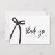 Add a touch of elegance to your client communications with this mod, coquette bow "thank you for your order" card. Featuring a chic, coquette, modern ribbon design this card is perfect for showing appreciation in style. Personalize and include a custom message, social media handles, website, logo and company name on the back for a polished, professional finish. A thoughtful way to elevate your brand while leaving a lasting impression. Ideal for small businesses, boutiques, salons, and creative entrepreneurs.