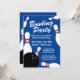 Moderner Bowling Birthday Party Einladung Vorlage. Coole Einladungen mit schwarzen Bowlingkugeln und weißen Bowling-Buttonen. Personalisieren Sie mit Ihrem eigenen Namen und Text. Spaß für Kinder und Erwachsene. Blauer oder benutzerdefinierter Farbhintergrund. Lass uns etwas Spaß machen!