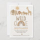 Modern Natural Tones Boys Safari Wild Ein 1. Geburtstag Einladung Niedlich moderne Safari-Thema Wild Ein erster Geburtstag Einladung zeigt vier niedliche Safari-Tiere in natürlichen Tönen, eine Sonne, Gepard-Print-Muster und Regenbogen. Diese süße wilde, thematische Einladung zum ersten Geburtstag ist ideal für jemanden, der eine Safari-Wild-Einladung in einem modernen Stil sucht.
