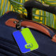 Modern Bright Neon Blue Green Monogramm Gepäckanhänger