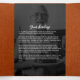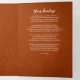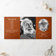 Diese raffinierte Gedenkkarte mit einem rustikalen Lederhintergrund, gepaart mit eleganten, weißen Schriftzeichen und Serifen-Schriftart, bietet einen warmen und herzlichen Ton. Die Frontblende besteht aus einem runden Foto und einem wunderschön geschriebenen Tribute-Text, der eine würdevolle Einführung in das Leben bietet, das in Erinnerung bleibt. Das Innendesign ist sorgfältig organisiert, um die Reihenfolge des Dienstes zu bestimmen, um Bestätigungen einzuschließen und um eine berührende Nachricht oder ein Gedicht oder einen anderen Text Ihrer Wahl zu erhalten, die alle durch Schwarz-Weiß-Foto-Panels ergänzt werden. Diese Vorlage bietet ein ausgewogenes Verhältnis von Eleganz und Empfindung und eignet sich somit ideal für Gedenkveranstaltungen oder die Feier von Lebensveranstaltungen. Die Ästhetik insgesamt ruft Wärme, Dankbarkeit und Erinnerung hervor und hilft den Familien, ihre Lieben mit Anmut und Sinn zu ehren.