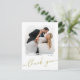 Modern Brush Photo Gold Script Wedding Thank You Postkarte