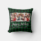 Modern Brush Script 3 Foto Happy Holidays Green Kariert Kissen