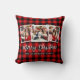 Modern Brush Script 3 Foto Weihnachten Kariertes Rotes Kissen