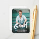 Modernes Pinselskript Mini-Größe Abschluss Ankündigung mit Foto in Holzkohle schwarz, einfach und einzigartig. Stellen Sie es mit Ihren eigenen Fotos und Party-Informationen ein.