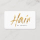 Elegantes und modernes, gebürstetes Goldskript "Hair", berufliche Stylist Visitenkarten. Einzigartiger Designstil verfügt über mehrere Textlinien für Vorlagen für Informationen. Die Hintergrundfarben in Schwarz und Weiß können individuell angepasst werden.