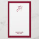 Dieses moderne und minimalistische Bordeauxmonogramm-Schreibgerät eignet sich hervorragend, um Ihrer Korrespondenz eine Touch von Eleganz hinzuzufügen. Das schlichte und elegante Design mit Ihrem Monogramm in einem stilvollen bordeauxfarbenen Schriftart macht es zu einer großartigen Wahl für den persönlichen oder beruflichen Gebrauch. Passen Sie Ihren Namen oder Ihren Titel an, um ein einzigartiges Set von Schreibwaren zu schaffen, das Ihren Stil widerspiegelt.