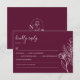 Modern Burgundy Boho Wedding Simple Elegant RSVP Card. Monogram at the back.