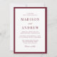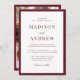 Create a warm, elegant first impression with this burgundy photo wedding invitation, designed with classic serif typography, graceful calligraphy accents, and a rich burgundy border. The back of the invitation showcases your vertical engagement photo within a matching frame, adding a personal touch while maintaining a refined, editorial feel. The deep, romantic tone pairs beautifully with traditional ceremonies, formal settings, and timeless wedding styles.
