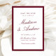 Set a rich, romantic tone with this burgundy photo save the date card, framed by a burgundy border and a sophisticated typographic arrangement. Flowing calligraphy highlights the couple’s names, while timeless serif lettering presents the wedding details in a balanced, formal layout. The back features your engagement photo outlined with a matching burgundy frame for a dramatic, cohesive finish. Perfect for fall and winter weddings, formal ceremonies, historic venues, and elegant evening weddings, this personalized save the date pairs beautifully with classic and vintage-inspired wedding stationery.