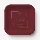Modern Burgundy Golden Leaflet Border Monogram Pappteller