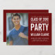 Modern Male Grad Graduation Party Invitation. Bold design burgundy and white with photo option. Graduation Party Invitation for him with a simple clean design. Perfect, flexible template design for high school grad, college graduate, or university graduates. Add your party information, name and other details. Design by Elke Clarke© Other colors or background effects available.