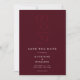 Personalize your wedding save the date cards with this editable template. Features minimal elegant typography design in burgundy color.