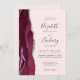 Modern Burgundy Silver Agate Blush QR Code Wedding Einladung