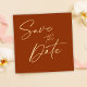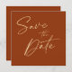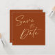 Feiern Sie Ihre kommende Hochzeit mit dieser schönen, minimalistischen und eleganten modernen Burnt Orange Save the Date Einladung. Ideal für Paare, die gewollt haben, Dinge einfach und stilvoll behalten. Mit einem minimalen Design mit dem trendigen Kalligraphieskript "Save the Date"-Sprichwort besticht diese Einladung durch einen ansprechenden und zugleich schlichten Stil. Die kräftige Rostfarbe verleiht der Touch eine warme und einladende Atmosphäre, die das Wesen der Herbstsaison erahnen lässt. Ob Sie eine rustikale Hochzeit im Freien planen oder eine intime Zeremonie im Inneren planen, diese Einladung ist der ideale Set für Ihren besonderen Tag. Kombinieren Sie mit anderen Artikeln aus der Burnt Orange Terracotta Einladungen für Hochzeiten. ©EpicSparkle