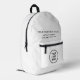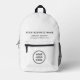 Moderner beruflicher Rucksack für Ihr Unternehmen mit Logo auf der Vordertasche. Fügen Sie Ihren Firmennamen, Slogan, Website oder anderen Text in einfacher moderner Typografie hinzu.