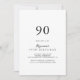 Diese moderne Kalligraphie-90. Geburtstagsfeier lädt zu einer rustikalen Geburtstagsfeier ein. Das einfache und elegante Design zeichnet sich durch klassische und extravagante Schriftzeichen in Schwarz und Weiß aus.