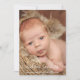 The elegant and minimalistic design of the baby boy birth announcement card features your beautiful newborn baby boy with a full photo on the front and a 4 photo collage on the back. Vertical card format. Personalize the modern calligraphy script in black lettering with the baby's full name and customize the remaining text with all the important birth stats.