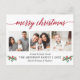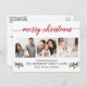 Moderne Kalligrafie Script Frohe Weihnachten 3 Foto Weihnachtspostkarte beinhaltet Watercolor Holly Berries - Rote Schrift