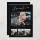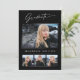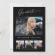 Vier Foto, trendige, moderne und elegante Abschluss-Ansichtskarten, mit Designelementen moderner Texte mit kalligrafischem Tintenskript. Die Fotos auf der Vorderseite der Karte werden mit einem feinen und minimalistischen Farbverlauf hervorgehoben. Die Kartenrückseite bietet personalisierte Textstellen für Informationen über Ihren Abschluss oder können gelöscht werden, wenn Sie eine Nachricht übergeben möchten. Schwarz & Weiß oder einfach den Hintergrund anpassen, um der Grundfarbe Ihrer Schule oder einer beliebigen Farbe Ihrer Wahl zu entsprechen. Ideal für Gymnasiasten, Unis und Studierende.