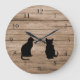 Modern cat silhouettes on rustic dark wood große wanduhr