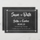 Personalisieren Sie mit Ihren Namen und Details auf dieser coolen Chalkboard-Save the Date Karte mit niedlichen Bechern.