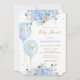 Modern Chic Blue Floral Balloons Boy Baby Dusche Einladung