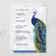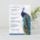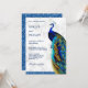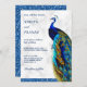 Erleben Sie Ihren Aufenthalt mit dieser eleganten Pfauenhochzeit, die Sie mit einem schönen Pfau mit lebhaften Federn und moderner Typografie auf weißem Marmorboden einlädt. Fügen Sie einfach Ihre Veranstaltungsdetails zu dieser einfach zu bedienenden Vorlage hinzu, um sie zu einer einmaligen Einladung zu machen. Dreh die Karte auf, um eine Imitat blaue Glitzer-Textur auf der Kartenrückseite zu zeigen.