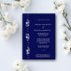 Modern Chic Minimal White Floral Navy Blue Wedding Ankündigung