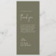 Dieses moderne, schicke Olivengrün dankt Ihnen und Hochzeitsmenü ist perfekt für eine einfache Hochzeit. Das holzbraune Design zeichnet sich durch eine einzigartige und stilvolle böhmische Typografie in einer minimalen Waldgrün Farbe aus. Personalisieren Sie die Tischkarte mit Ihrem Menü auf der Vorderseite und eine Danksagung an Ihre Gäste auf der Rückseite.