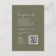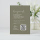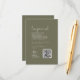 Diese elegante, olivgrüne Hochzeitsnacht-Wunschzettel ist perfekt für eine einfache Hochzeit. Das holzbraune Design zeichnet sich durch eine einzigartige und stilvolle böhmische Typografie in einer minimalen Waldgrün Farbe aus. Personalisieren Sie diese Einladungskarte mit Ihren Namen, Ihrer Webadresse und einem kurzen Wunschgedicht. Fügen Sie Ihren Gästen einen QR-Code hinzu, mit dem Sie sich ganz einfach an Ihrem Bargeldregister beteiligen können.