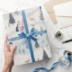 Modern Christmas Blue und Tan Snowy Village Geschenkpapier
