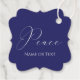 Weiße Silhouette mit Goldfolie auf einer Seite, dunkelblau auf der Rückseite mit Peace in weißer Schriftzeichen geschrieben und ein Ort, um Ihren Text hinzuzufügen