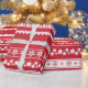 Modernes festlich rotes Papier mit weißen Weihnachtsmustern.