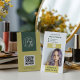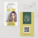 A sleek and modern vertical business card in a vibrant citrus green and forest green palette, featuring space for your logo, a professional photo, and a scannable QR code. The contemporary layout includes clean typography, bold color blocking, and clear sections for contact details and job title. Ideal for hair stylists, makeup artists, estheticians, or beauty freelancers looking to leave a bold and memorable impression.