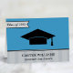 Einfach elegante benutzerdefinierte Himmel blau Dankeschön-Noten, die mit dem Namen des Absolventen der High School oder Uni, ihrer Schule, und Klassenjahr personalisiert werden können. Das Design zeichnet sich durch eine schwarze Graduierungshülse, moderne Bannerdetails und eine fein gestreifte Grenze aus.
