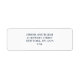 A modern classic wedding return address label that brings a refined, timeless touch to envelopes, offering a smooth impression that feels intentional and beautifully understated. Its balanced layout supports both contemporary and traditional aesthetics, making it a thoughtful addition to wedding stationery, invitation suites, thank‑you cards, and everyday correspondence. The personalized details create a cohesive look across all mailings while keeping the overall style minimal, elegant, and visually grounded. With a focus on clarity, simplicity, and lasting appeal, this label enhances paper goods with a subtle sense of sophistication.
