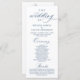 Modern Classy Elegant Wedding Ceremony Program card. It is designed with scroll accent that can be personalised with custom/ personalised text for your bridal party, ceremony details, memorial notes and thank you message, in Navy Blue.