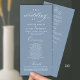 Modern Classy Elegant Wedding Ceremony Program card. It is designed with scroll accent that can be personalised with custom/ personalised text for your bridal party, ceremony details, memorial notes and thank you message, in dusty blue.